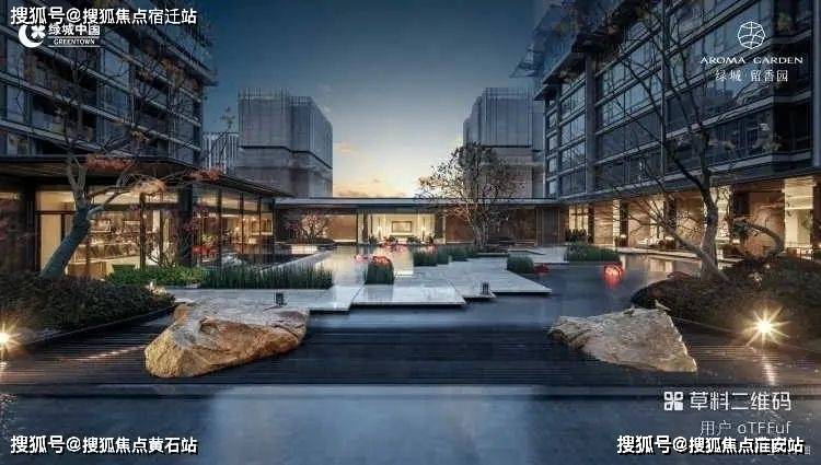 1、整案规划:「城与街」的进退有度从古猗园的文脉延续,到绿城桂花系列的迭代,基于绿城多年研发革新,主入口运用前厅后园的造园手法,临城纳水,融景造园,营造“出则繁华,入则静谧”之感。