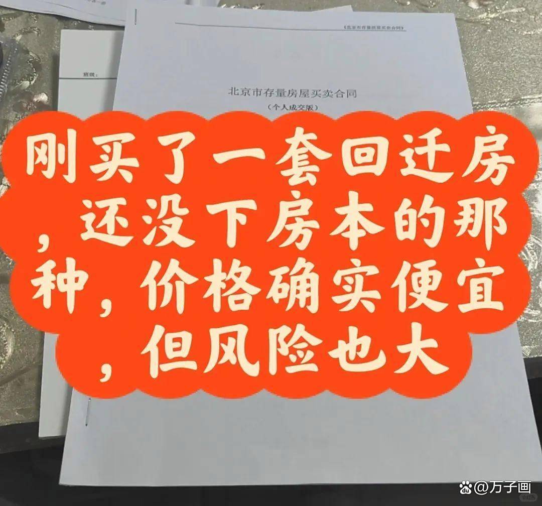 回迁房牵扯的人也多,拆迁户、开发商、政府,一旦出现问题,就会比较麻烦,比如,拆迁户不满意补偿反悔了,你买这房子可能就打水漂了,保不定钱都收不回来。